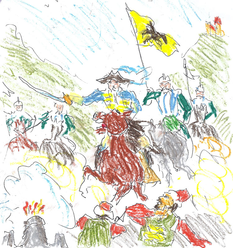 The following year, Ascanio had to defend the same city from the French army. The French besieged it, but were unable to conquer it. In the battle of Almanza, which was such a heavy defeat for the Austrian cause, Ascanio was wounded. (At that time, the Emperor of Austria was also Emperor of the Holy Roman Empire, which was reduced mostly to Germany. Therefore Austrians and Germans fought together against the French to put an Austrian prince on the throne of Spain, after the last King of Spain, who was originally from the ruling family of Austria, the Hapsburg, died without children. The French wanted a French prince to become King of Spain, and this had originated the War of Spanish Succession.)